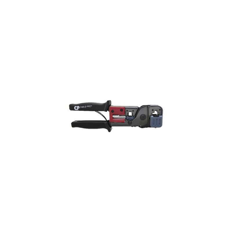 La CPRJ11-45 es una herramienta multifunción que permite a los instaladores profesionales la capacidad de cortar, pelar y plegar ambos RJ11 y RJ45 cables para instalaciones que pueden beneficiarse de aplicaciones sencillas con una sola herramienta. La herramienta está diseñada con un tope de cable para garantizar una preparación perfecta del cable cada vez. El instalador tiene la opción de preparación del cable de 1/4 '' o 1/2 dependiendo de los requisitos del trabajo.