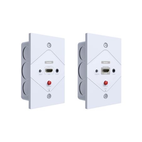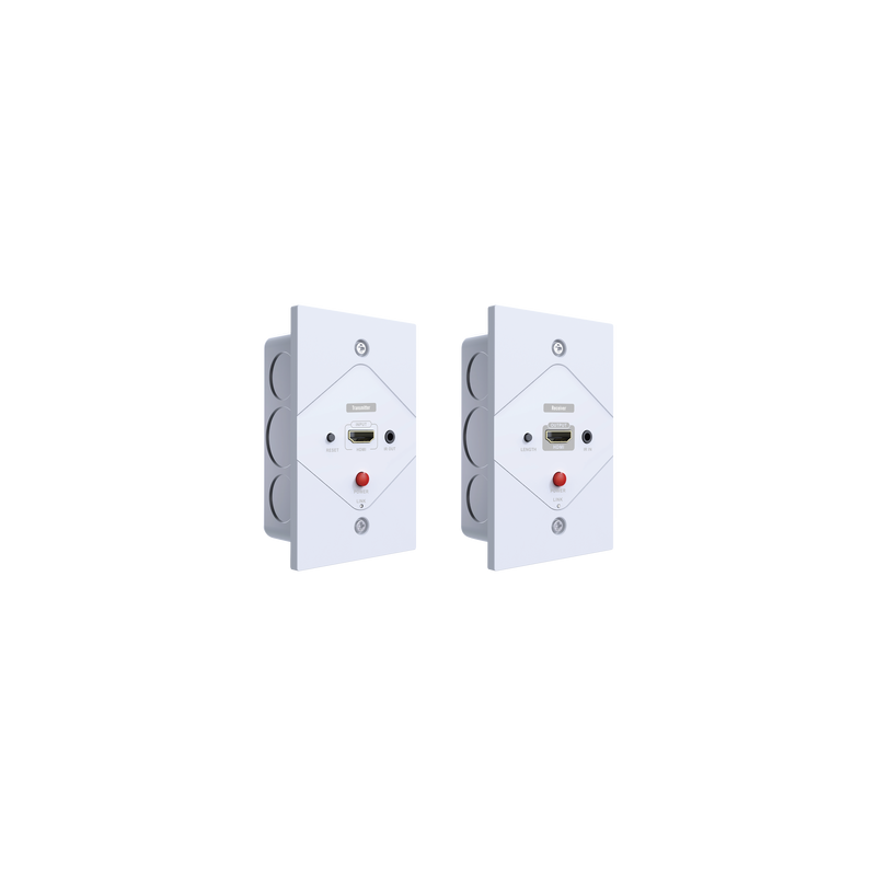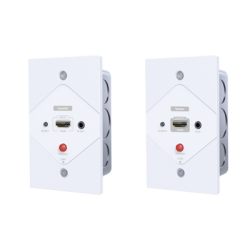 Características Destacadas: El extensor de placa de pared HDMI es un extensor de tipo enchufe. Está compuesto por un emisor y un receptor fijados por separado en la pared y puede transmitir hasta 40 metros a través de un solo cable CAT6. La señal IR es compatible para permitir el control del dispositivo fuente al final de la pantalla.